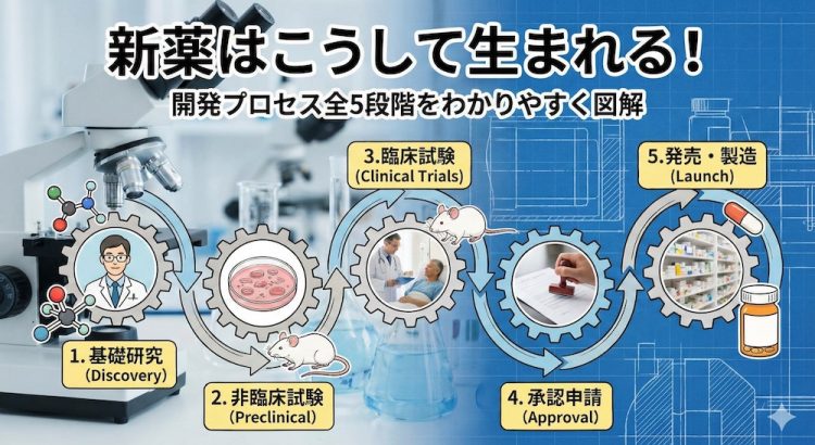 【図解】新薬開発の全貌!研究から承認まで5つのステップ